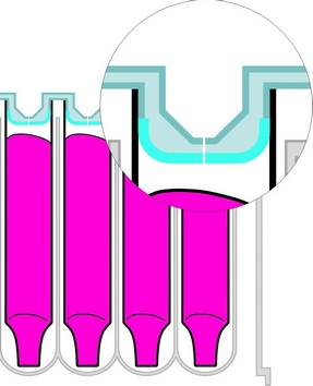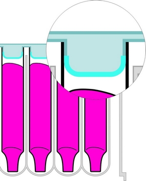 A külön ehhez a lezáró rendszerhez kifejlesztett mikroüvegek a blokk